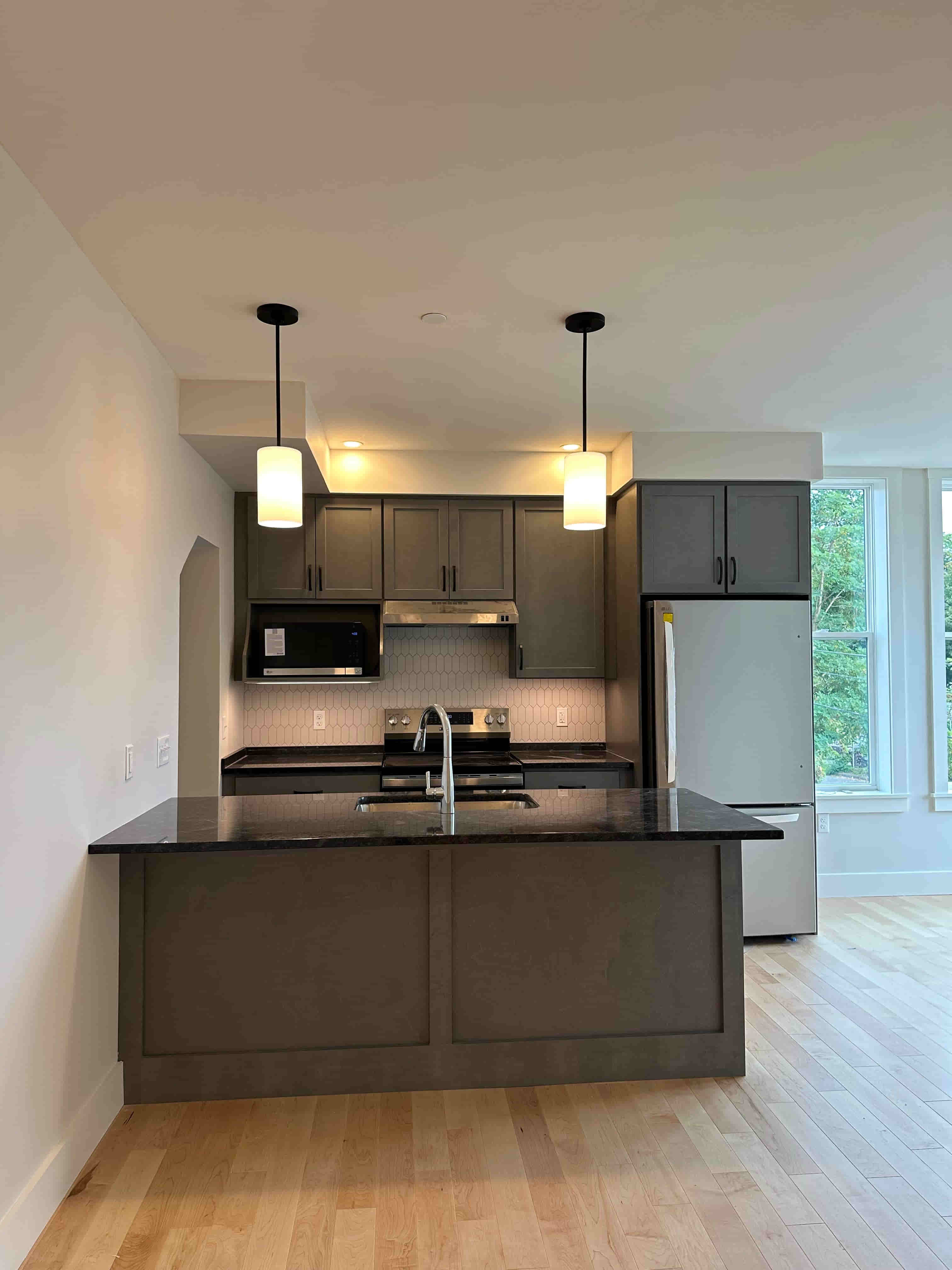 Available Now-Start paying rent November 1st-Second floor two bedroom with great views of DT Florence. Open living room and kitchen. Kitchen with island, stainless steel appliances and stove with external vented range hood system. Both bedrooms have nice sized closets and ceiling fans. Tenant responsible for electricity. Full bathroom with stackable washer and dryer and walk in glass shower. Hardwood maple flooring throughout. Included in the rent trash removal, recycling, snow removal, lawn care, water and sewer. Cat and dog 10lbs and below considered. No smoking on premises.