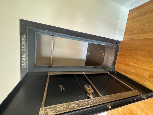 Available Now-Encompassing the original Clarke School President's office, this unit boasts not only Hubbard Hall's single fireplace, but also the President's original walk-in, Mosler Safe Company vault. Open kitchen and dining area with tile flooring with stainless steel refrigerator with double doors, electric stove and dishwasher. White Oak Flooring in the open living space with half bath. Spacious one bedroom with one bath and large closet.