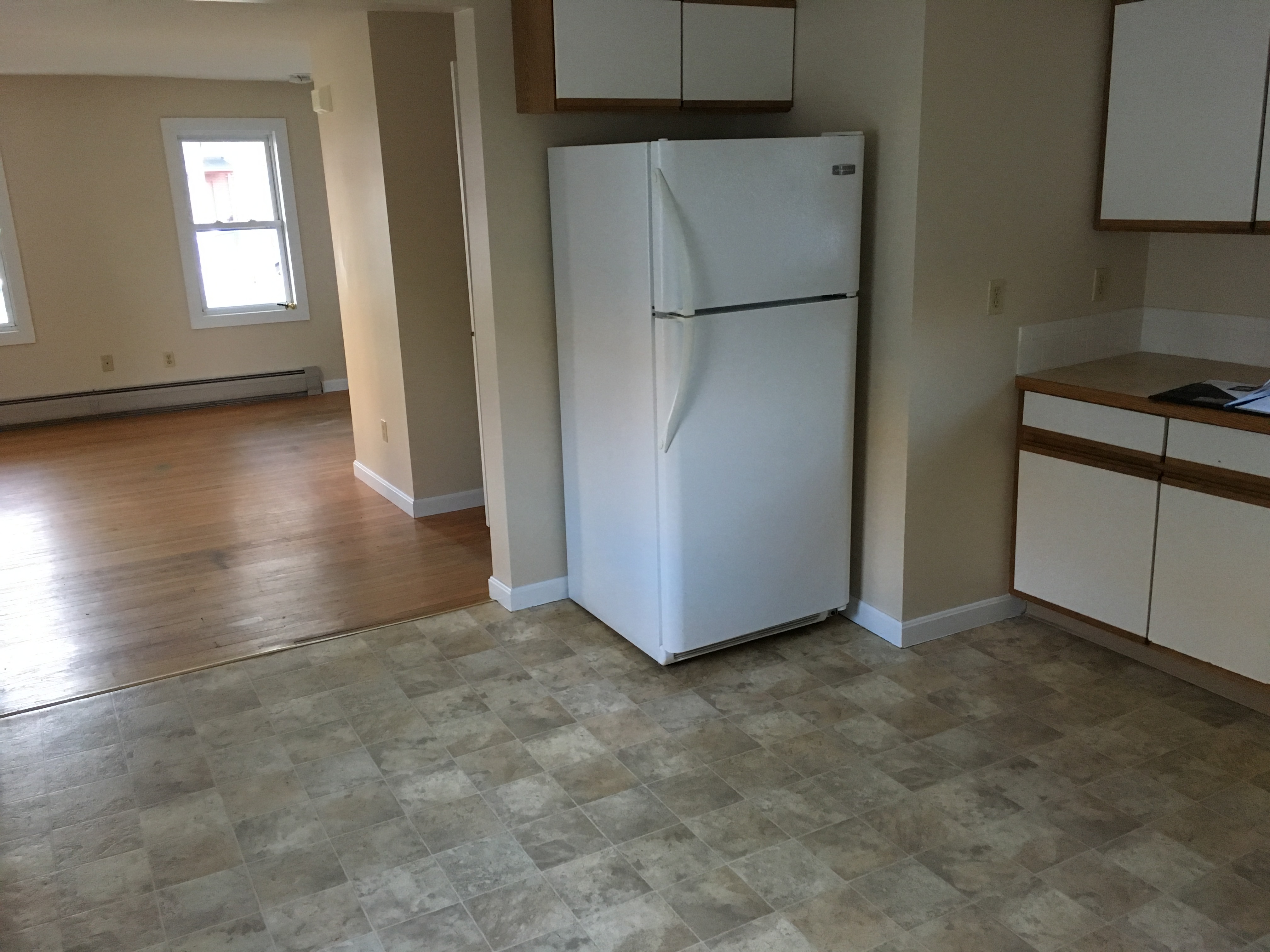 Bi-level one bedroom on Center Street Northampton. First level has a half bath. Unit has an eat in kitchen, living room and half bath on the first level. Living room has wood floors. Second floor has the full bath with tub and bedroom with wood floors. Tenant responsible for gas and electricity. Included in rent trash, snow, lawn, water and sewer. Two off street parking spots. No pets and no smoking.