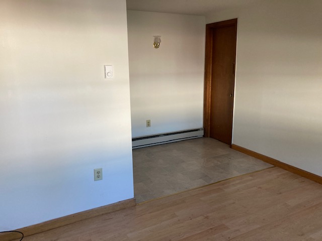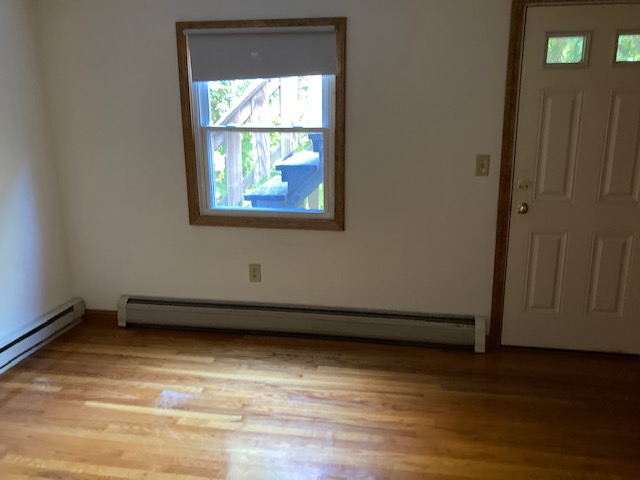 Available NOW-Comfortable first floor one bedroom (12x10) and one bath apartment. Close to the bike path, and a short drive to Southampton/Holyoke or Northampton. Pergo floors in the living room (12x10) and kitchen and hardwood in the bedroom. Kitchen has refrigerator, electric stove and garbage disposal. Full bathroom with tile flooring. Included in the rent trash and recycling, lawn maintenance, snow removal, and water and sewer. Tenant responsible for electric heat and hot water. Coin-op laundry and storage cage in the basement. One assigned parking space.