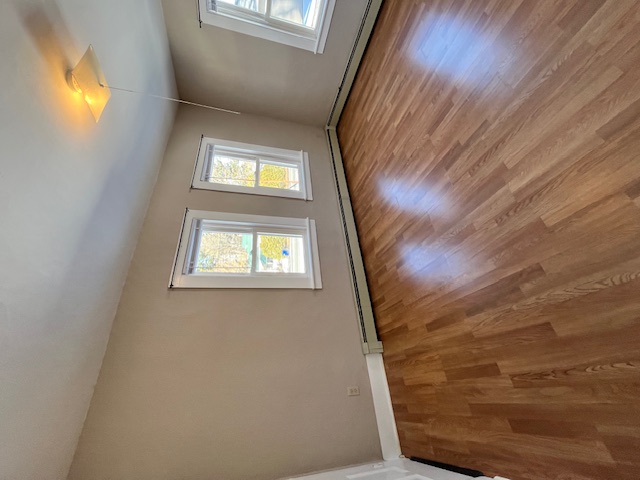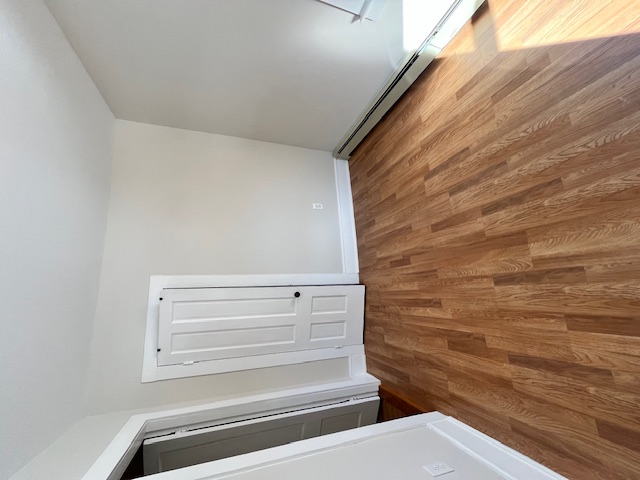 Owner occupied bi-level two-bedroom apartment, enter from rear mudroom into an open kitchen and living space. Generously sized rooms allow you to live comfortably. Shared front porch and a shared back yard. Kitchen with linoleum flooring, gas stove, dishwasher, refrigerator pantry closet, ample cabinetry and counter space. Access to private basement for storage (store at your own risk) and washer and dryer hookups (electric)-tenant maintains. Open living and dining room with wood floors. Second floor has two nice sized bedrooms (14x9 and 11x8) and full bathroom with tub. Yard Access: No access to backyard behind the garage. Yard adjacent to rental is available. Tenant responsible for gas, electricity, trash and recycling. Included in rent-snow removal, lawn care, water and sewer. Indoor cat considered, no dog. Off street parking for two cars.