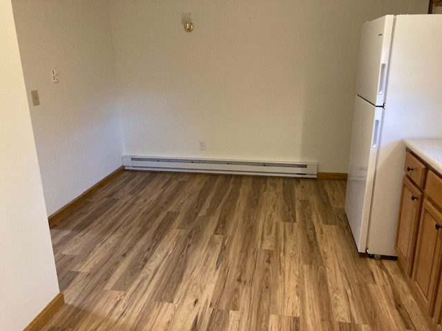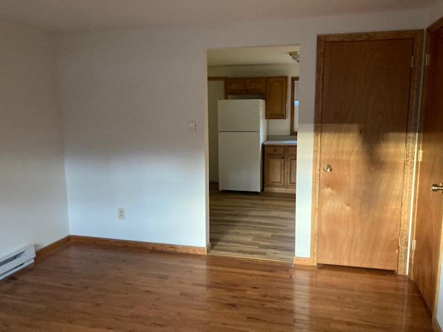 Townhouse style two-bedroom townhouse style unit on Main Street Easthampton. Nice size living room with closet, wood floors and access to basement. Large kitchen with refrigerator and electric stove. Second floor has a full bath with tub, two bedrooms with wood floors and a linen closet in hallway. Included in the rent trash and recycling, lawn maintenance, snow removal, and water and sewer. Tenant responsible for electric heat and hot water. Coin-op laundry and storage in the basement. One assigned parking space.