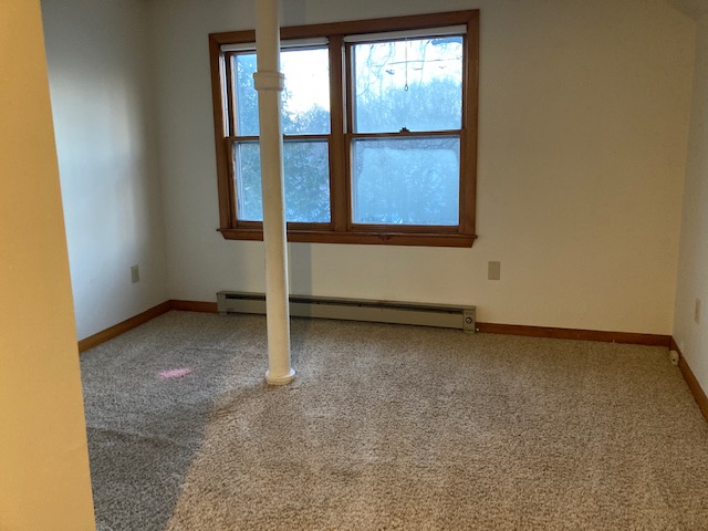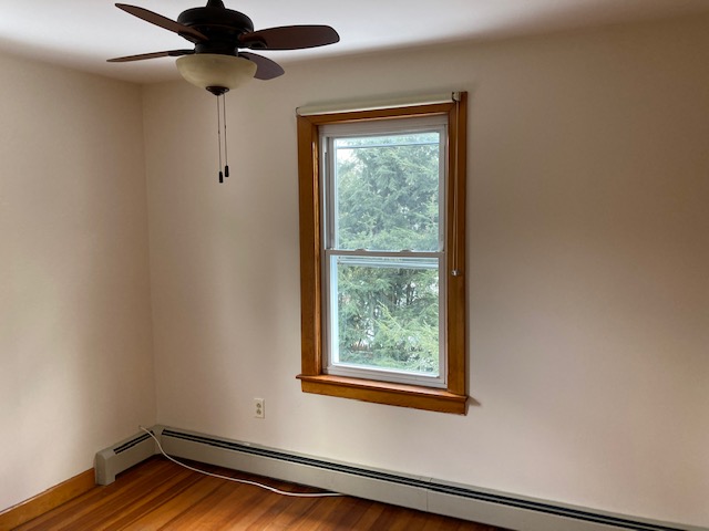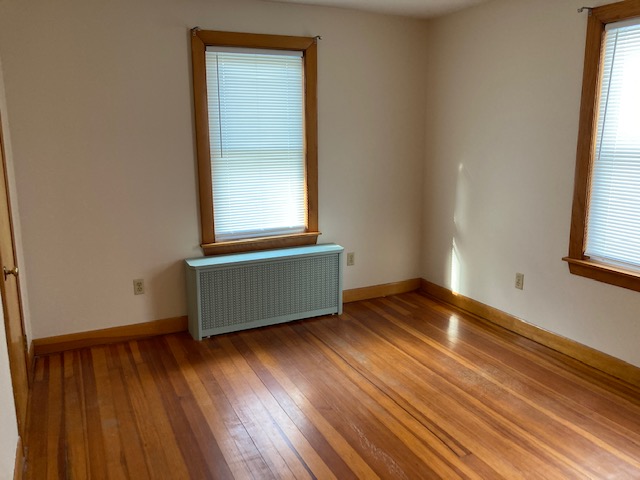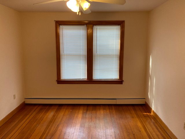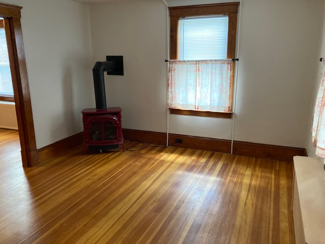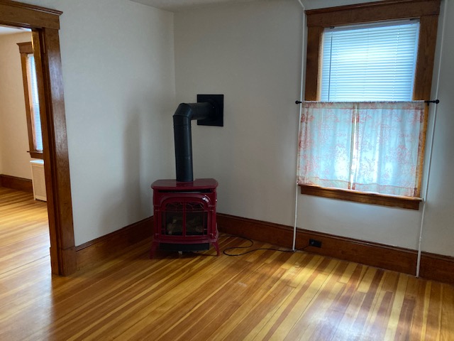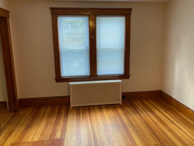 Tri-level three-bedroom duplex, Sunlight streams in to light up the wood floors and generously sized rooms allow you to live comfortably. Two porches and a shared back yard. Eat in kitchen with ceiling fan, plenty of cabinetry and counter space, dishwasher, microwave, refrigerator and gas stove. Double parlor with wood floors and three bedrooms. Decorative stove in the living room. Third floor is carpeted with two large closets and mini splits for heating and cooling. In the JFK Middle School zone so traffic goes by slowly. Storage in basement. One car garage bay and two off street parking spots for parking. Tenant responsible for gas, electricity and shoveling snow from walkway leading to the apartment. Included in rent, trash removal, snow removal from driveway, lawn care, water and sewer. No smoking and no pets.