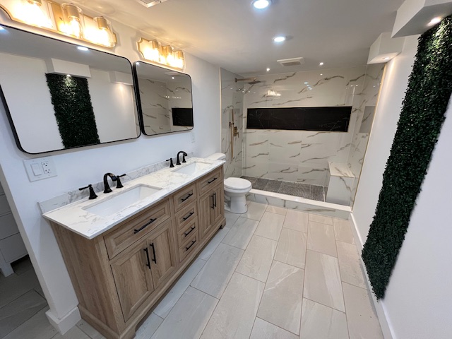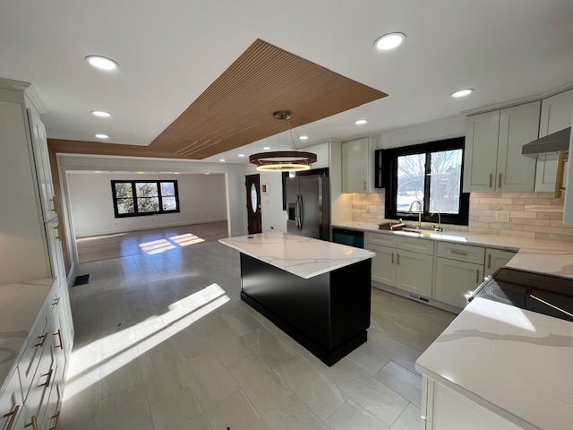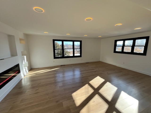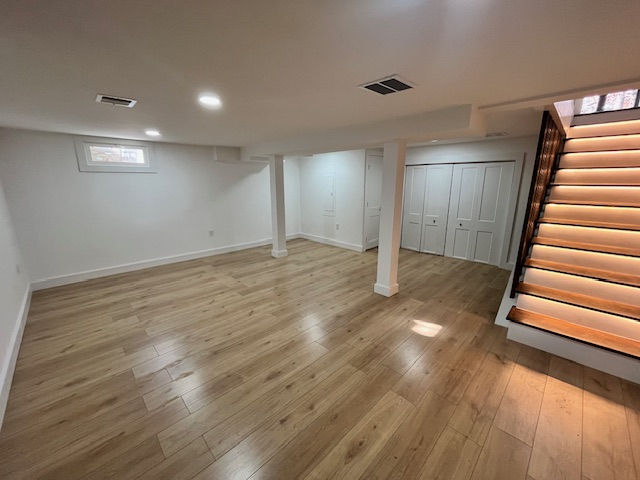 Available Now-This amazing fully renovated three plus bedroom home and two and half baths is located on North King, a short drive to the highway. The home has beautiful new flooring throughout, recessed lighting, beautiful accent lighting, electric fireplace and all the modern conveniences. The house opens to a spacious, modern eat-in kitchen with all new appliances, Quartz counters, cabinets and a large island with a Quartz counter and a modern lighting fixture. The kitchen is open to the front living room with an electric fireplace surrounded by built-in shelves with back lighting. There is a sunny living space, surrounded by windows and features a bar. Renovated and half bath on this level. Two plus bedrooms on this level off the open living space with nice sized closed. On the garden level is the primary bedroom with an en suite full bathroom with double sinks, walk in shower and entry into the walk-in closet. Washer and dryer is located on this level with a sink and folding area. Large open living space for tenants’ enjoyment. Backyard for tenant’s use. There is a shed for storage and parking in the driveway. Tenant responsible for oil for heat, propane for hot water and stove, electricity, snow removal, trash and recycling removal and snow removal from walkways. Included in the rent-snow removal from the driveway, lawncare, water and sewer (septic). Small well-behaved pet considered. No smoking.