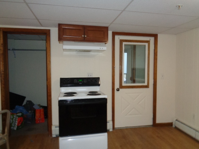 Available Now-First floor one bedroom on South Main Street Haydenville. Walk into an open kitchen and living room with new vinyl wood flooring. Kitchen has a stove and refrigerator. One bedroom with ample closet space and vinyl wood flooring. Additional storage room. Included in rent- lawn care, snow removal, trash and recycling removal (dumpster on site) water HEAT AND HOT WATER! No pets. No smoke.