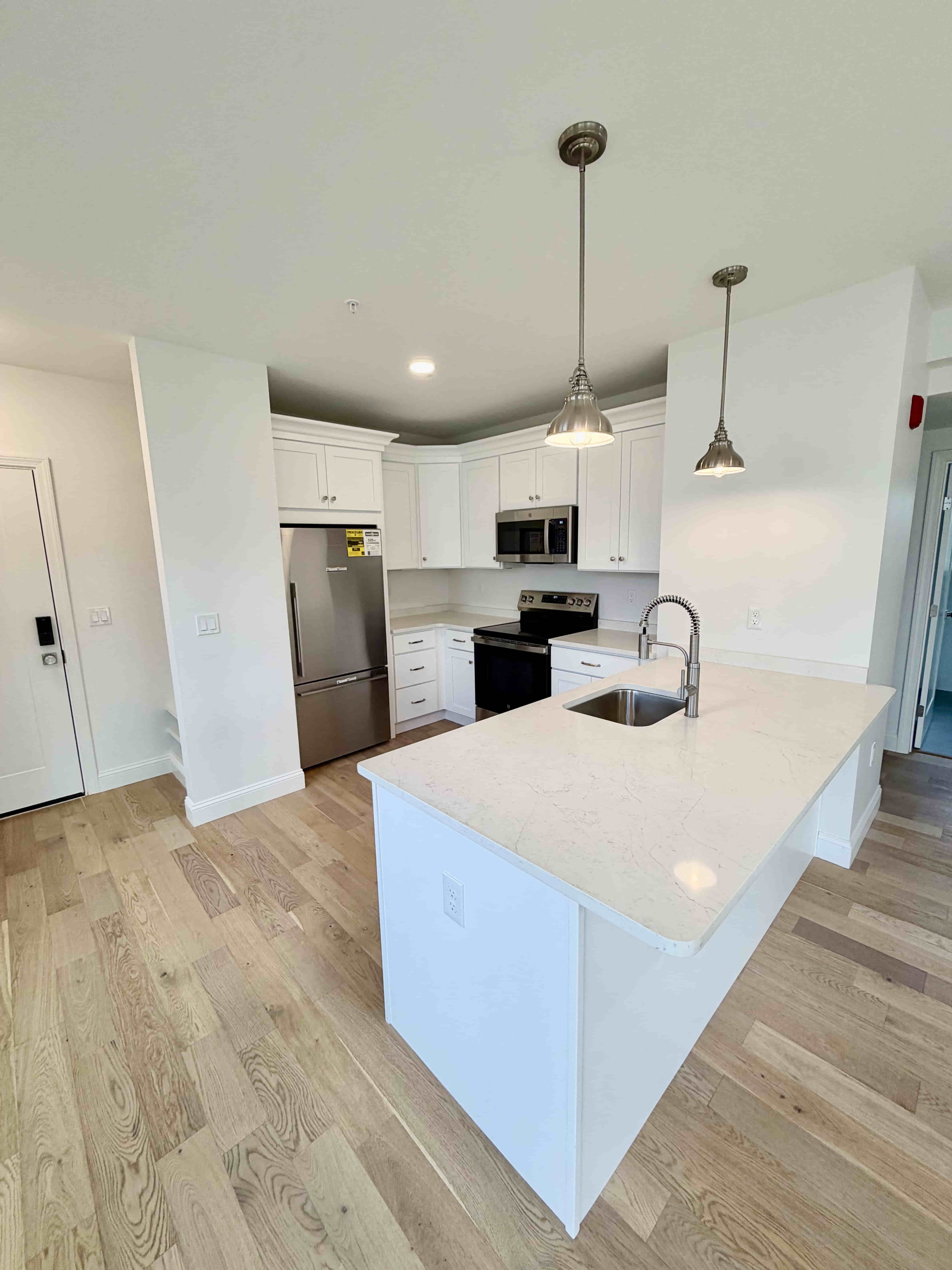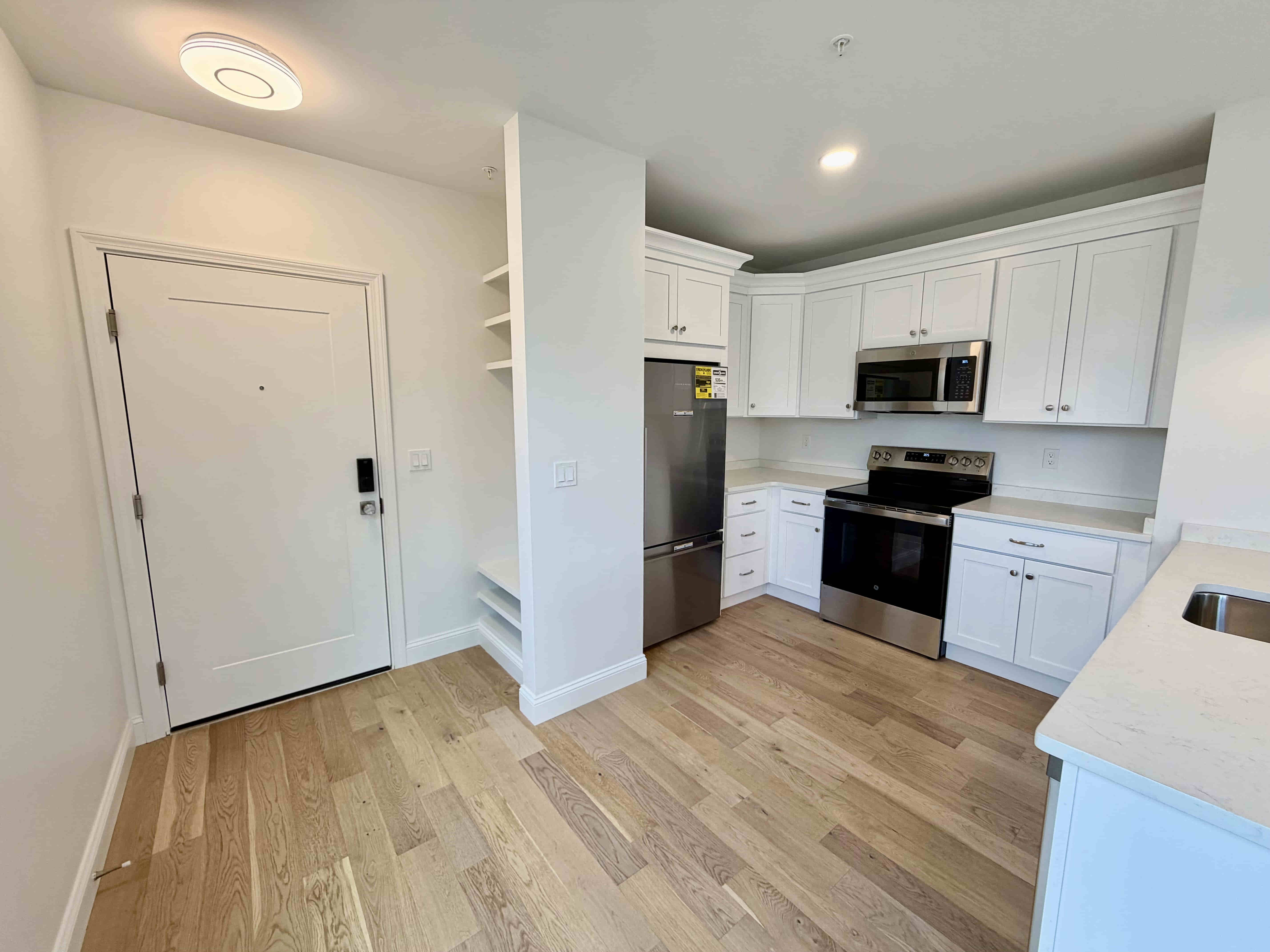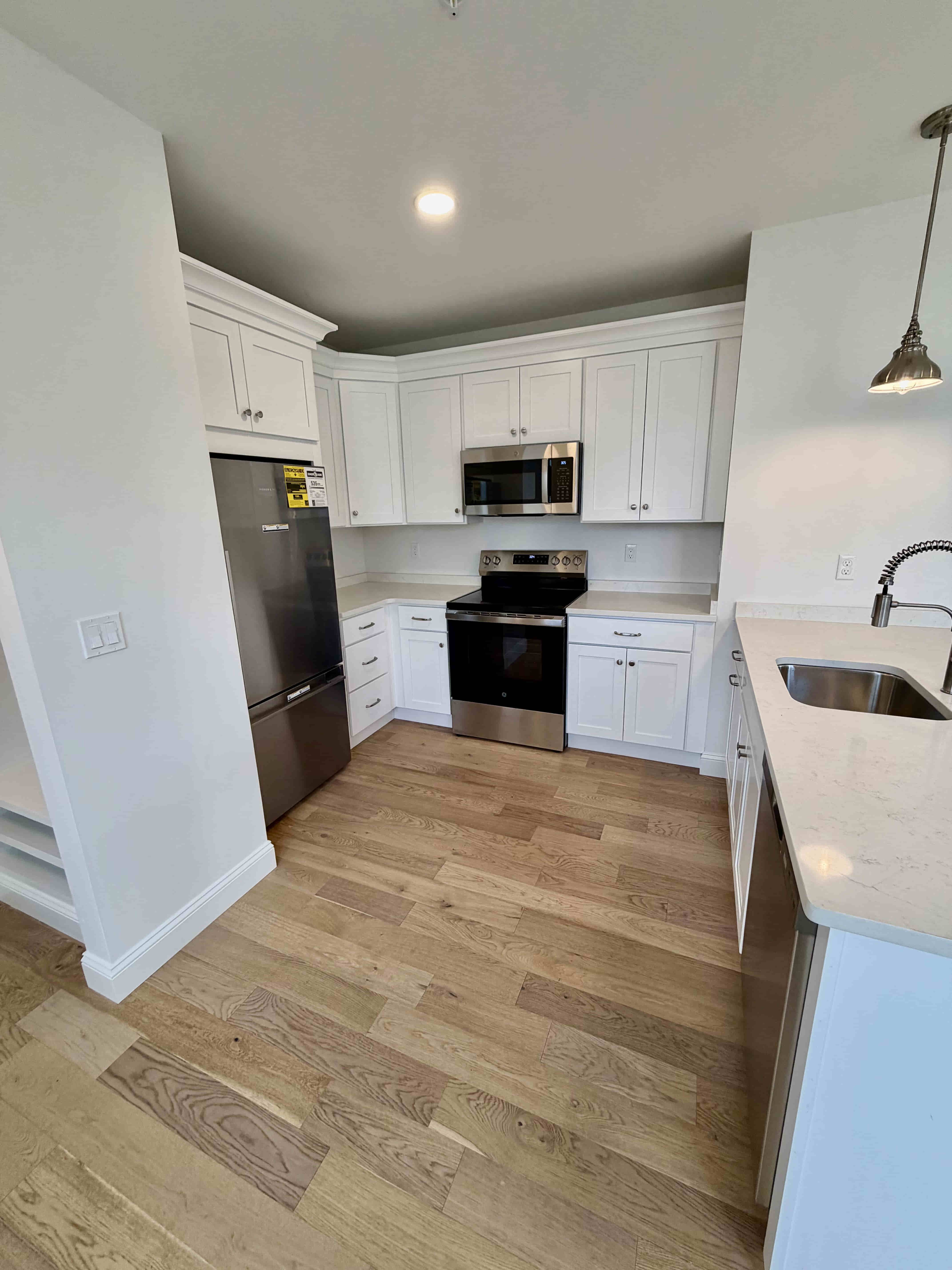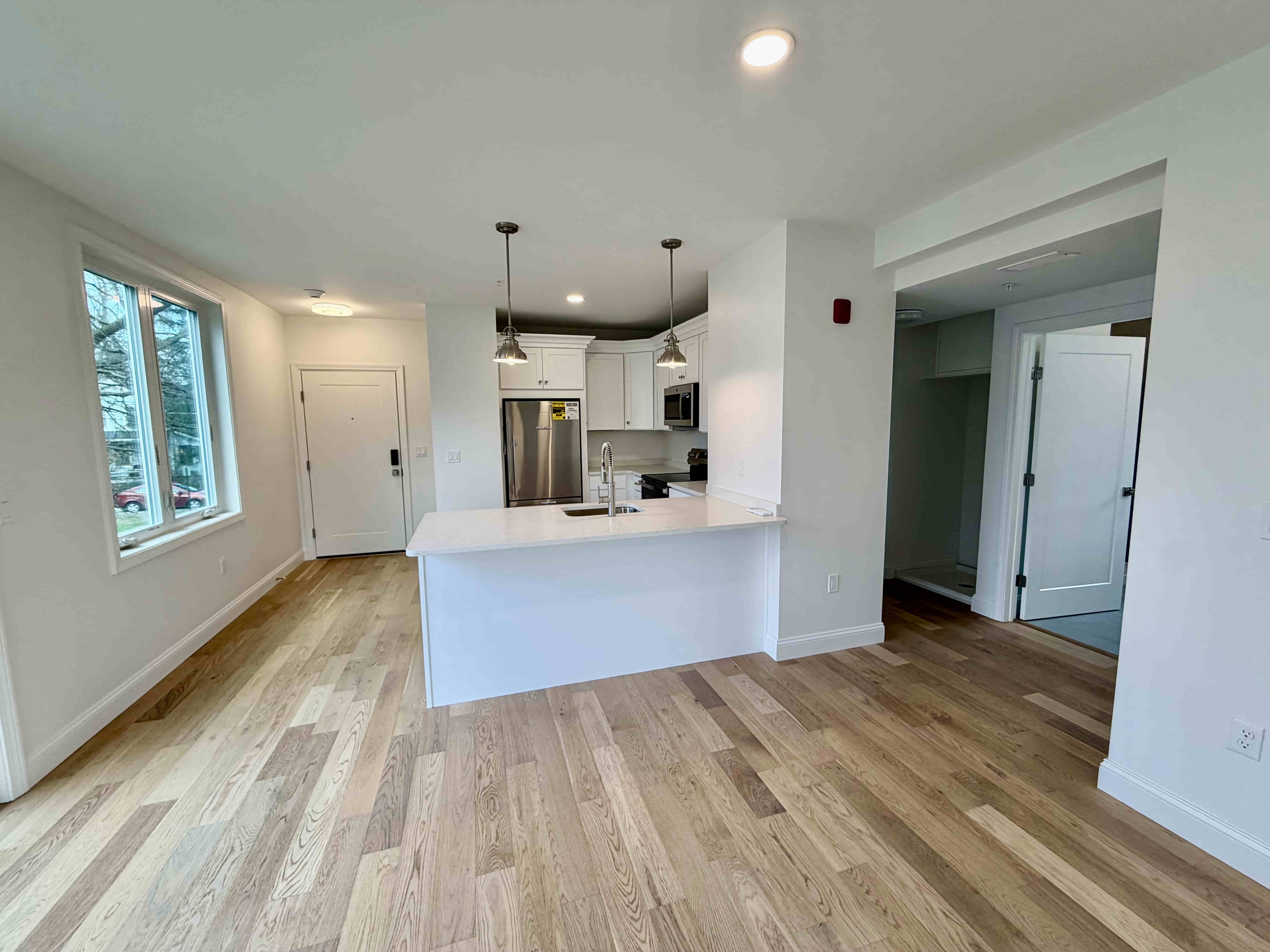 Available Now-Two-bedroom luxury unit on Williams Street Northampton. Stacked unit is in the rear of the building. Hardwood flooring, upscale bath with walk in shower unit and the kitchen has high end finishes with new appliances, one parking space and a private outdoor space in the unit. Included in rent-trash and recycling removal, water and snow. Tenant responsible for electricity for heat, hot water, stove etc. Well behaved pet considered.