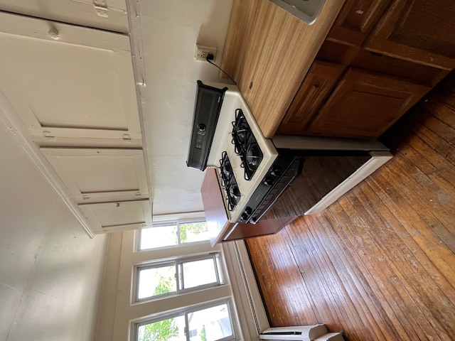 June 1st-Top floor one bedroom apartment. Hardwood floors throughout and has a skylight in living room. Good size closets and eat in kitchen with gas stove and refrigerator. Tenant responsible for gas for heat, hot water and stove and electricity. Coin-op laundry on first and third floor! Negotiable lease terms! Cat friendly! Walk to DT Northampton!