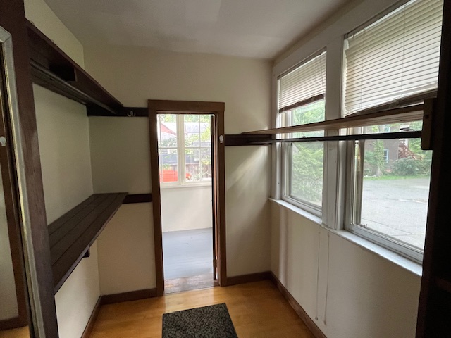 First floor spacious one bedroom on Prospect Street Northampton. Opens up to large eat in kitchen with ample counter and cabinet space, has gas stove, dishwasher and refrigerator + built in storage closets in hallway + classic walk-in pantry with glass doors and ample drawers for storage. Off kitchen is front room that works well as office area - has doors to front entry. Glass double windows to large bedroom with decorative fireplace and hardwood floors. Large living room with double doors & built in hutch! Big bathroom with ample storage closets. Wide and long porch with many windows. Included in rent- lawn care, snow removal, trash removal, water & unassigned off-street parking for two cars only. Tenant responsible for gas and electric. Well behaved pet considered. Good location!