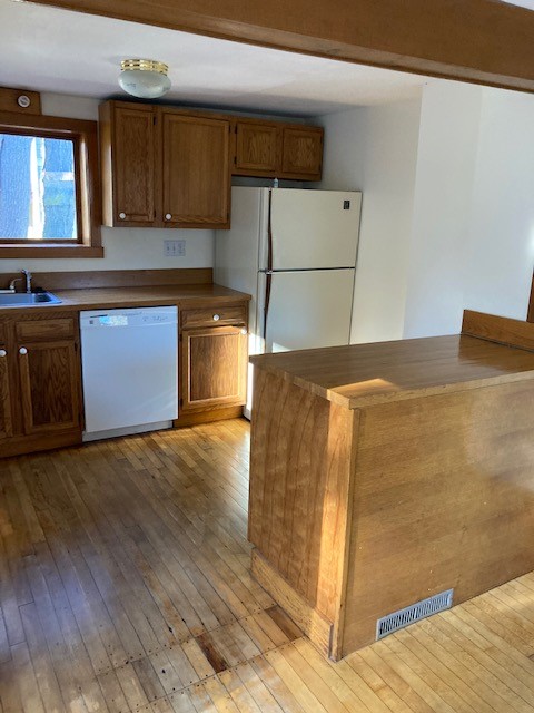 Available January 1st- Bi Level Cozy two-bedroom home on Prospect Street Northampton! First floor has living room with decorative nonfunctioning fireplace and attractive mantle, nice hardwood floor and good light. Opens up to eat in kitchen with gas stove, dishwasher and refrigerator. Good counter and cabinet space and sliding glass doors to good sized deck overlooking spacious back yard. Second floor has two bedroom and one full bath with tile flooring. Exterior access to basement - storage allowed as long as no obstruction to utility equipment. Included in rent- lawn care, snow removal, trash/recycling removal, water and off-street parking in private driveway. Access to laundry room in basement of 222 Prospect Street. Tenant responsible for gas and electric. Pets-small dog 30lbs or under or cat considered. No smoking on premises.