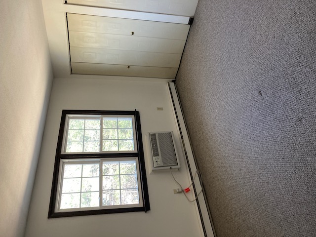 Townhouse style two bedroom in Hadley Village in South Hadley. First floor has kitchen with shaker style honey color cabinets, ceiling fan, dishwasher, refrigerator and electric stove, carpeted living/dining area with a slider to a private back yard and a half bath. Second floor has two carpeted bedrooms with incredible closet space and a full bath. One built-in air-conditioning unit on the first level and also on the second level. Full basement with washer and dryer hookups! Included in the rent-trash removal, snow removal, professional landscaping, water and sewer. Pool on the premises!