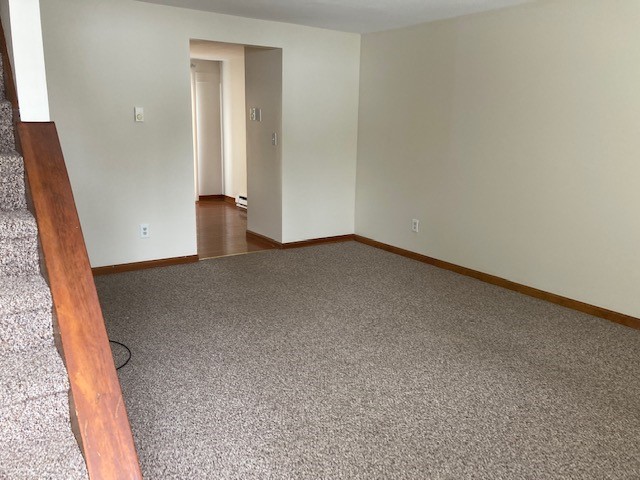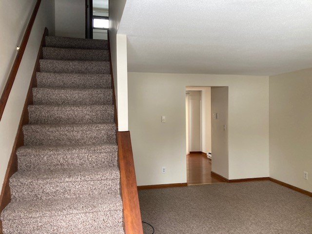 April 1st-Bryan Avenue Easthampton townhouse style two bedroom! First floor has living room, eat kitchen with good cabinets and counter space- refrigerator and electric stove. Off kitchen is a half bath and sliders to private patio! Also off kitchen is access to private basement and common area where coin-op laundry is! Second level has two good sized bright bedrooms, carpet throughout and good closet space! Nice sized full bath. Unit is located on the second floor. Included in rent- trash removal, lawn care, parking lot snow removal- (tenant does walkway), off street parking for one and water and sewer. Tenant responsible for electricity. Cat negotiable