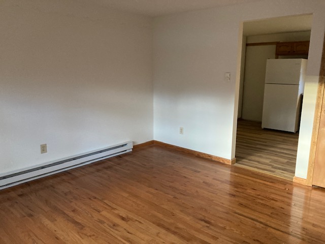 Townhouse style two-bedroom townhouse style unit on Main Street Easthampton. Nice size living room with closet, wood floors and access to basement. Large kitchen with refrigerator and electric stove. Second floor has a full bath with tub, two bedrooms with wood floors and a linen closet in hallway. Included in the rent trash and recycling, lawn maintenance, snow removal, and water and sewer. Tenant responsible for electric heat and hot water. Coin-op laundry and storage in the basement. One assigned parking space.