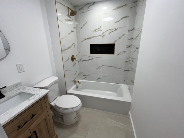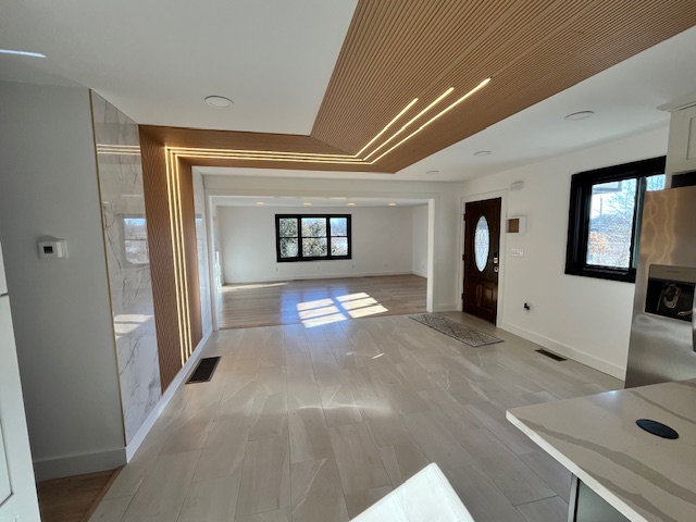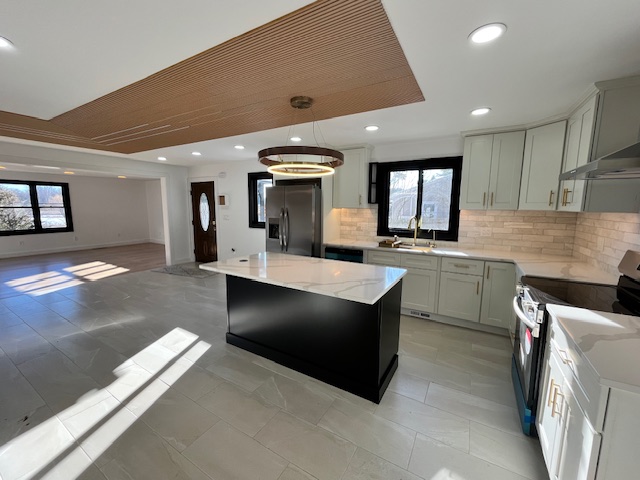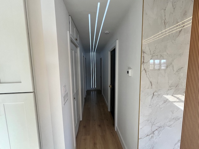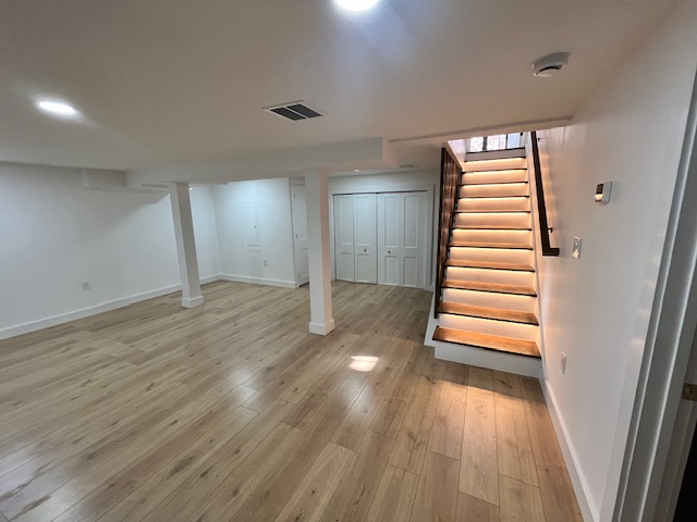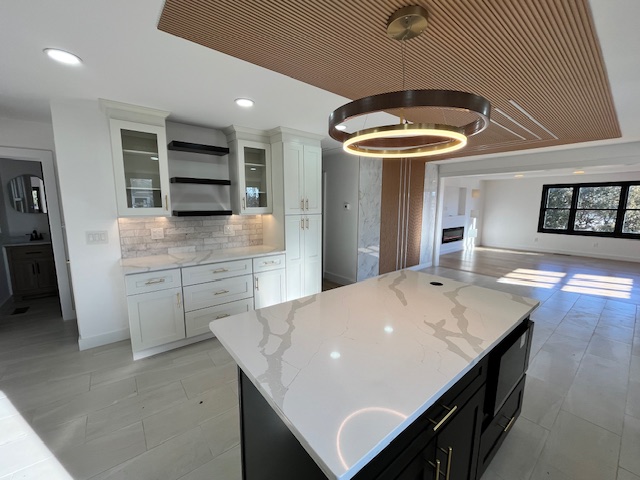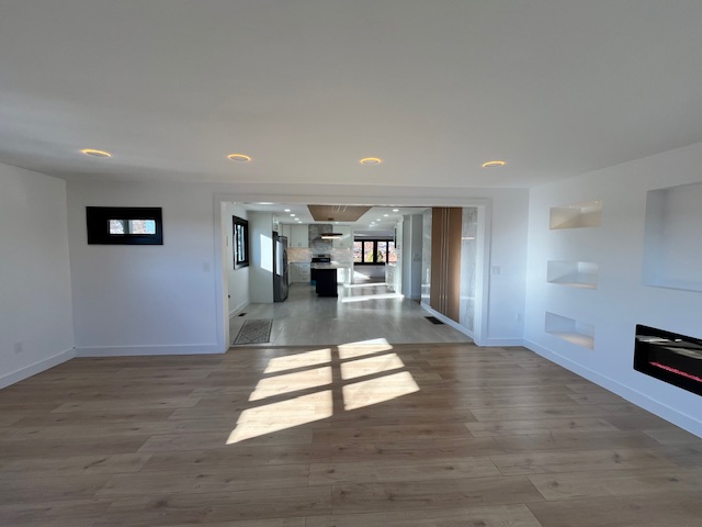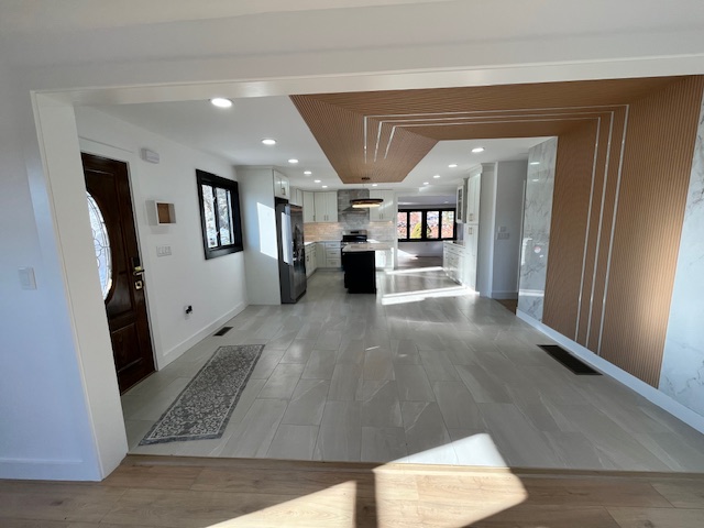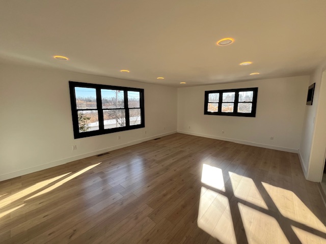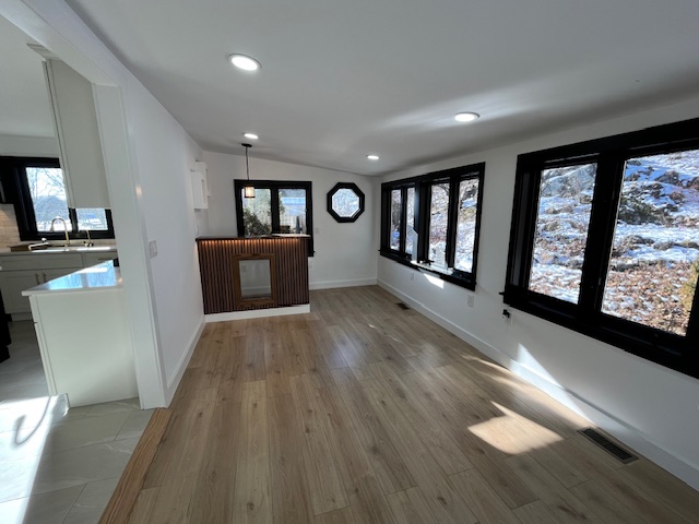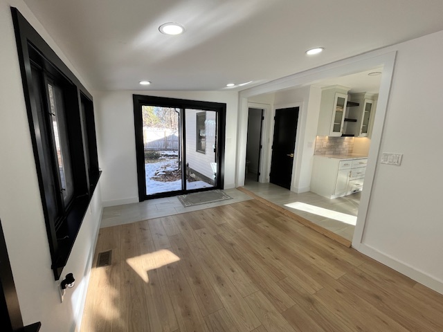 Available Now-This amazing fully renovated three plus bedroom home and two and half baths is located on North King, a short drive to the highway. The home has beautiful new flooring throughout, recessed lighting, beautiful accent lighting, electric fireplace and all the modern conveniences. The house opens to a spacious, modern eat-in kitchen with all new appliances, Quartz counters, cabinets and a large island with a Quartz counter and a modern lighting fixture. The kitchen is open to the front living room with an electric fireplace surrounded by built-in shelves with back lighting. There is a sunny living space, surrounded by windows and features a bar. Renovated and half bath on this level. Two plus bedrooms on this level off the open living space with nice sized closed. On the garden level is the primary bedroom with an en suite full bathroom with double sinks, walk in shower and entry into the walk-in closet. Washer and dryer is located on this level with a sink and folding area. Large open living space for tenants’ enjoyment. Backyard for tenant’s use. There is a shed for storage and parking in the driveway. Tenant responsible for oil for heat, propane for hot water and stove, electricity, snow removal, trash and recycling removal and snow removal from walkways. Included in the rent-snow removal from the driveway, lawncare, water and sewer (septic). No pets and no smoking.