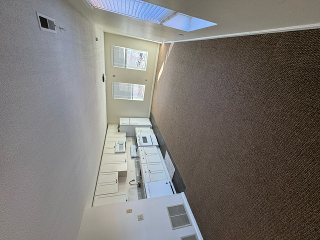 One bedroom on corner of Hampton and Pleasant Street in Downtown! The first level has a new kitchen with granite counters-, self-closing cabinets, new appliances- electric stove, dishwasher, refrigerator, and microwave. Vinyl flooring in the kitchen. Opens to carpeted living and dining area. Full bathroom with full bath and shower. The second level has an open carpeted living area with closet and door to large bedroom with closet- windows allow for a lot of natural sunlight! Utility closet off kitchen. Included in rent- trash and recycling, outdoor property upkeep, water & sewer. Tenant responsible for gas and electricity. The unit has an intercom system, and the building has an elevator, laundry room (use of laundry included in the rent) and area for deliveries. Cat considered, no dog.