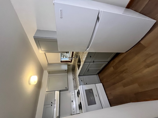 Second floor one bedroom on Park Street Easthampton. Walk into living room with wood floors and closet. Off the living room is a full bath tile floor and tub. Galley kitchen with electric stove refrigerator and ample cabinet and counter space. Bedroom has carpeted floors, good closet space. One assigned parking space and some additional unassigned parking. Tenant responsible for electricity. Included in rent-trash removal, snow removal, lawn care, water and sewer. No smoking and no pets.